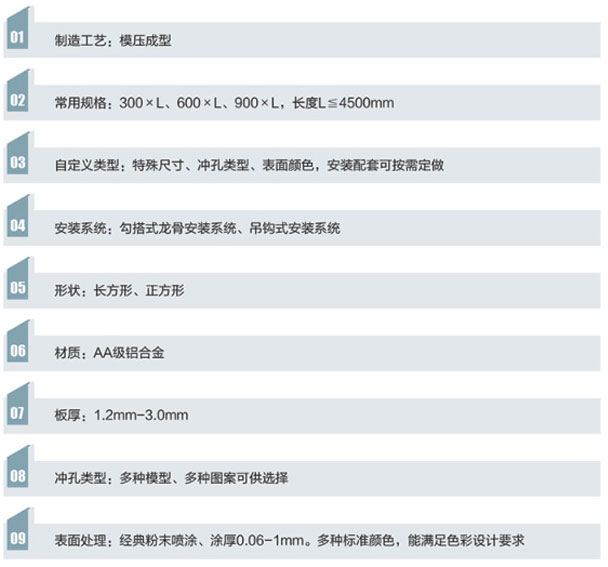 搭鋁單板天花板面平整,一般為單向平行龍骨勾搭式結(jié)構(gòu),板與板之間的拼接時通過龍骨有次序搭折在一起的,板邊獨特的勾搭設(shè)計,能很好的控制板與板之間的活動性,從而確保了板與板之間的縫隙風(fēng)嚴密平整拼縫細密,棱線分明,不同寬度可實現(xiàn)多種組合。