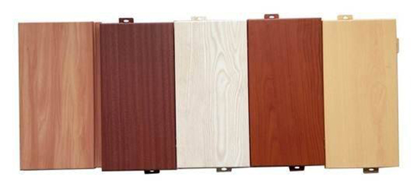 仿木紋鋁單板在木紋轉印后的產品表面有非常逼真的木紋處理效果,而且經處理后,產品表面有極好的耐曬、耐磨和耐腐蝕性。