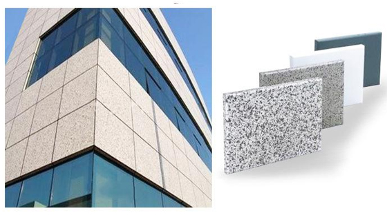 仿石材鋁板能有效抵抗酸雨、空氣污染及紫外光的侵蝕、能保障10年不變色、不褪色、不剝落、不爆裂、不粉化。在現在工業污染嚴重的城市中,常常有酸雨、鹽霧等,而仿石材鋁單板能夠抵御這樣的侵襲。非常適合做外墻裝飾,歷經風雨,長時間不變色、不變型,質保氟碳仿石紋鋁單板25年不變色。